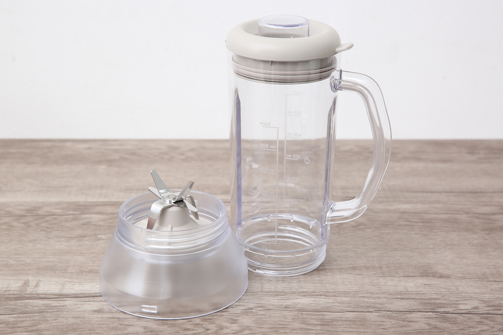 Bộ gồm: 1 cối xay sinh tố lớn dung tích 600ml, 1 cối xay khô dung tích sử dụng 300ml (dung tích tổng 450ml) và 1 bình đựng nước trái cây 500ml có nắp đậy cực tiện dụng.