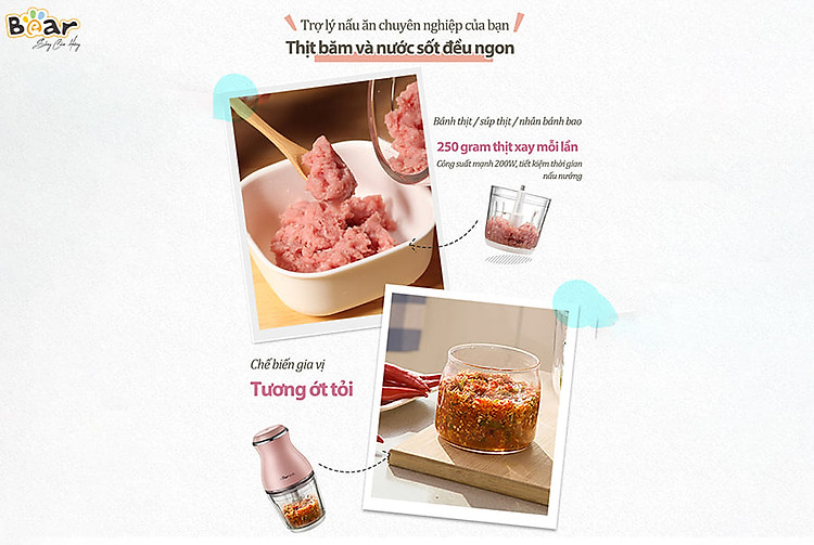 Máy xay thịt Bear QSJ-B02U2 với thiết kế nhỏ gọn, vừa vặn khuôn tay của bạn mang đến cảm giác thoải mái và dễ dàng hơn khi sử dụng. Được tích hợp lưỡi dao sắc bén với thiết kế thông minh cùng công suất xay lên đén 220W, Máy xay thịt nhỏ gọn Bear QSJ-B02U2 cho hiệu quả xay cực kỳ tốt, giúp bạn tối giản công đoạn xay thịt vất vả, tốn kém thời gian.