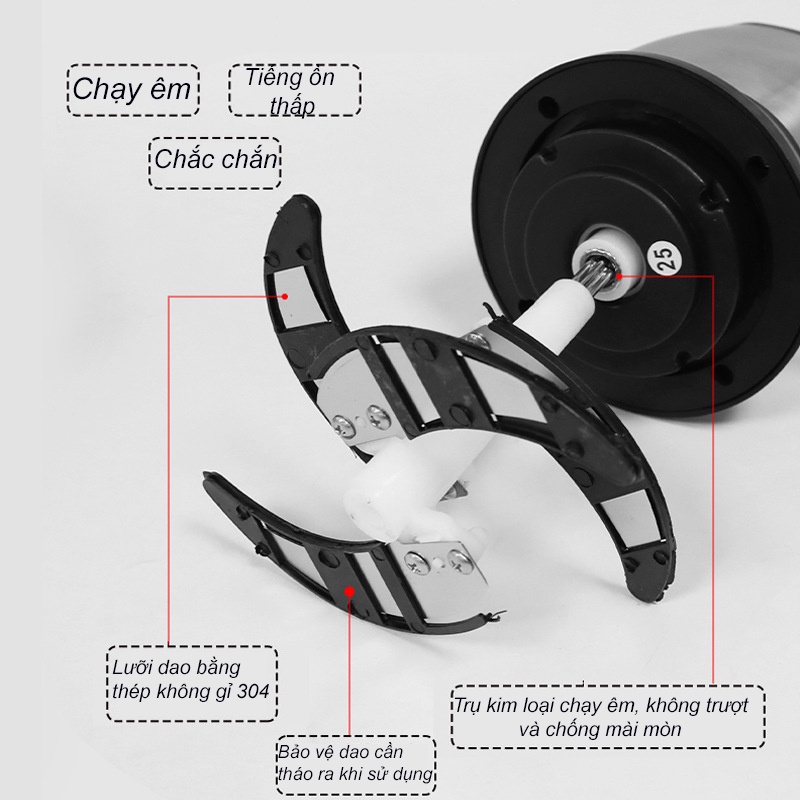 Chất liệu: Cối xay Inox 304 dày dặn đẹp không lo vỡ, lưỡi thép không gỉ