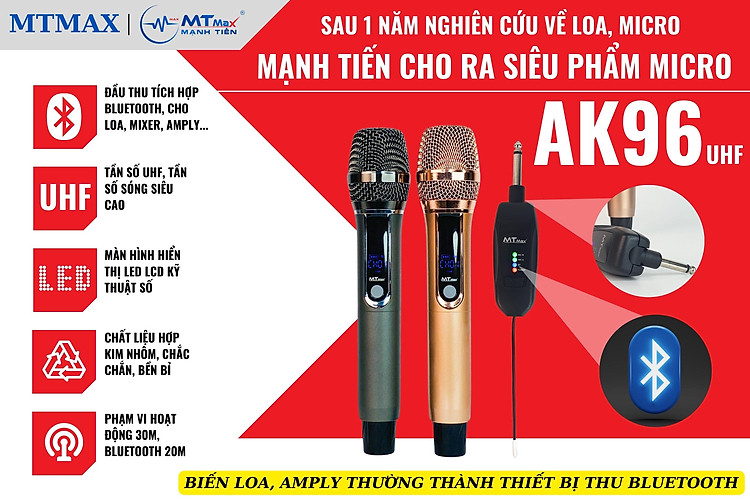Sau một năm tìm hiểu sâu về micro và loa, "MẠNH TIẾN" đã tạo ra một sản phẩm vượt trội - . Với tính năng tiên tiến và thiết kế đẹp mắt, tích hợp Bluetooth trực tiếp trên đầu thu.