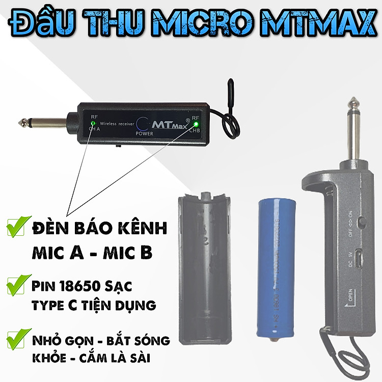 Micro không dây đa năng MTMAX Q01 - Micro không dây giá tốt, sử dụng cho mọi loại thiết bị âm thanh - Micro dành cho loa kéo, loa bluetooth, amply - Màn hình Led hiển thị thông số - Âm thanh cực hay, giá cực rẻ