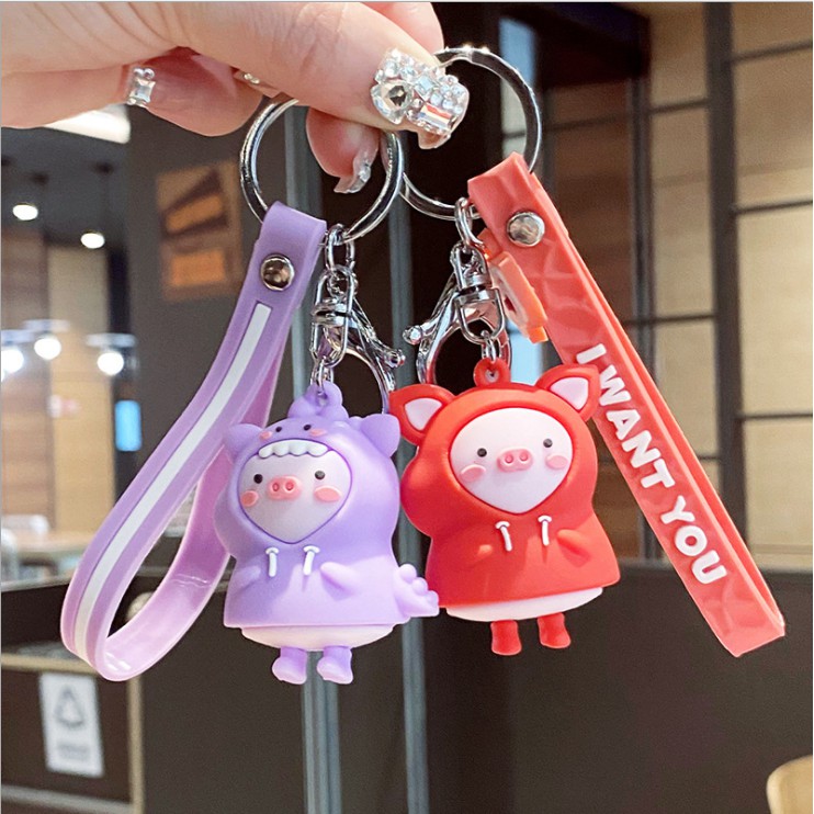 Chất liệu: nhựa mềm (sản phẩm không kèm dây, móc khóa) tạo hình bé lợn dễ thương mặc các trang phục cosplay. Trên đầu đã có sẵn vòng cao su có thể gắn móc khóa dễ dàng.
