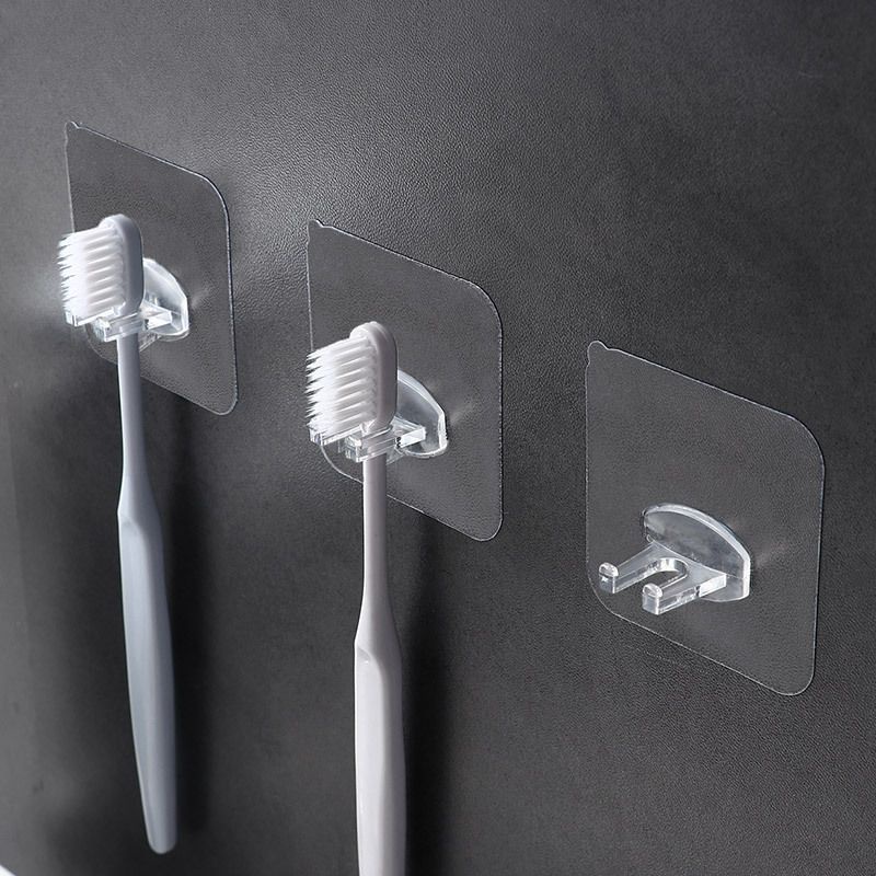 Nhà cửa & Đời sống > Sắp xếp nhà cửa > Móc treo || Móc kẹp bàn chải đánh răng dán tường gạch men, cửa kính, treo vật dụng, trong suốt,2 chân