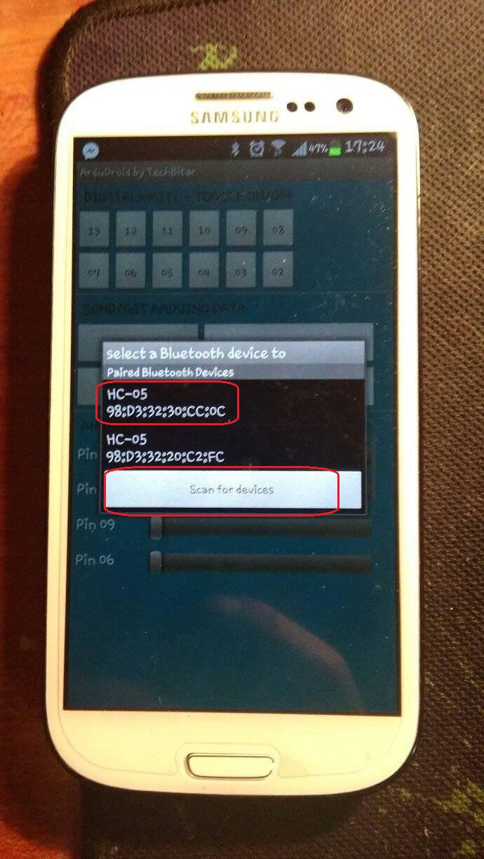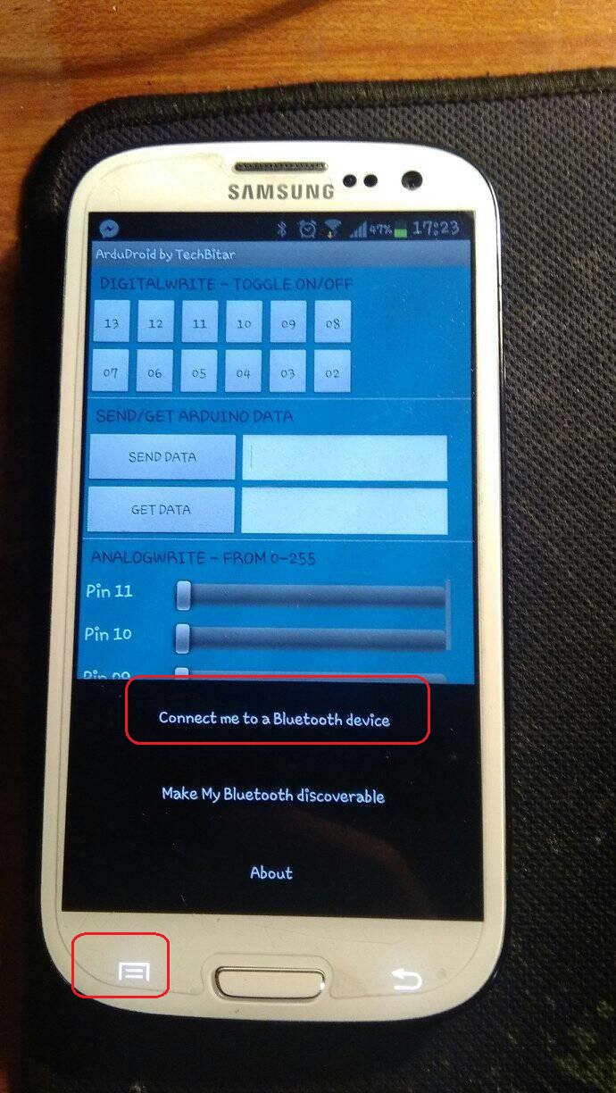 Sau đó vào giao diện của Ardudroi và bật bluetooth của máy lên và tiến hành kết nối với module bluetooth đã kết nối với arduino.