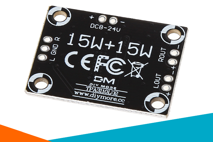 Module khuyếch đại âm thanh sử dụng chip TPA3110 hoạt động ổn định, bass mạnh với thiết kể nhỏ gọn và đơn giản module sử dụng và lắp đặt rất dễ dàng. Module Khuyếch Đại Âm Thanh TPA3110 cho ngõ ra 2 kênh mỗi kênh công suất 15W sử dụng loa 4-8Ω. Module được thiết kế với các tín hiệu ngõ vào, ngõ ra và ngõ cấp nguồn được để trống các chân pad phù hợp sử dụng tích hợp cho các bộ âm thanh mini và vừa phải.