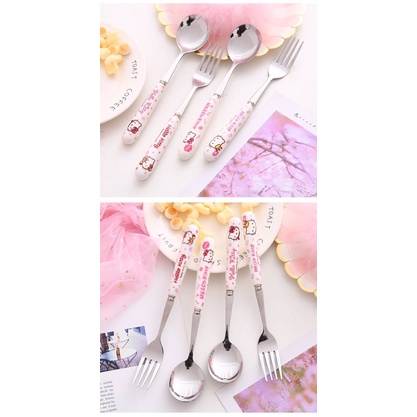 Nhà cửa & Đời sống > Bộ đồ bàn ăn > Bộ dao kéo || Muỗng nĩa inox cán sứ Hello Kitty