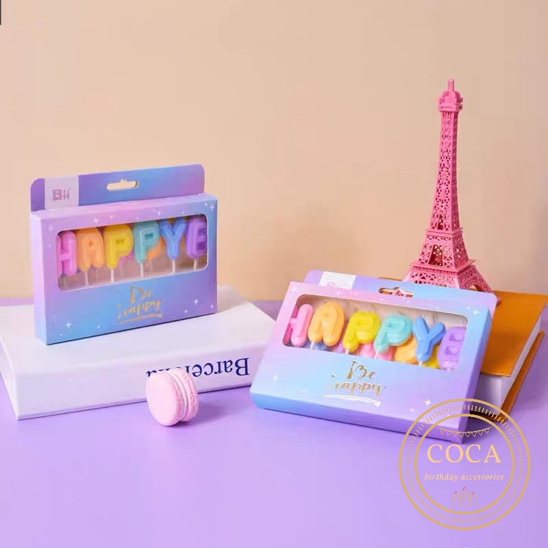 Bộ nến Happy Birthday màu Pastel phong cách Hàn Quốc