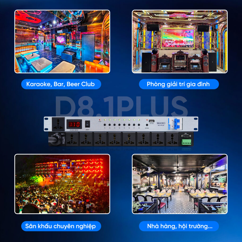 Dù là dàn âm thanh sự kiện, sân khấu hội trường, âm thanh đám cưới, phòng karaoke kinh doanh hay hệ thống giải trí gia đình, bộ nguồn Autovolt D8.1Plus luôn chứng tỏ vai trò thiết yếu của mình qua những tính năng vượt trội.