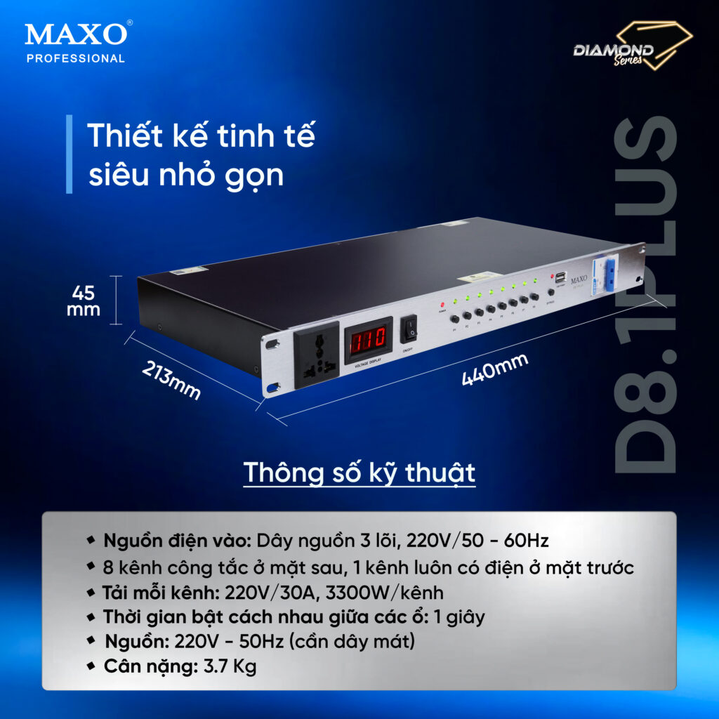 Đây là một thiết bị hết sức cần thiết cho dàn âm thanh của bạn: Dàn âm thanh sự kiện, sân khấu hội trường, âm thanh đám cưới, dàn karaoke, giúp thuận tiện trong việc bật tắt vừa bảo vệ các thiết bị trong tủ máy được an toàn, bền bỉ và tránh hư hại.