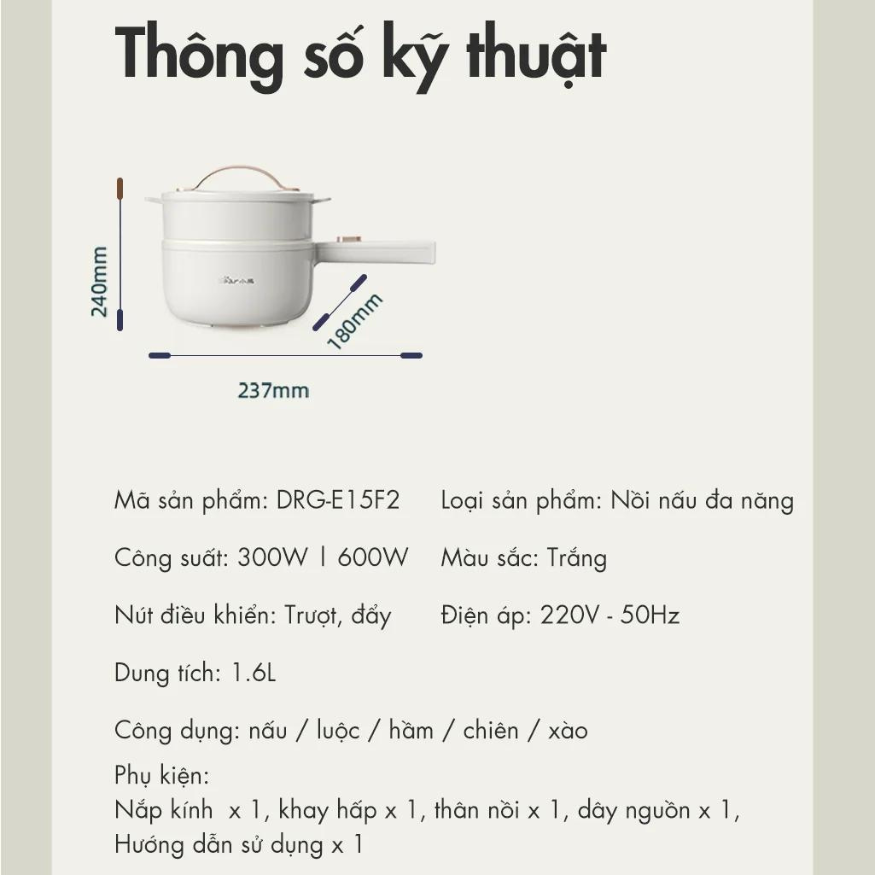 Nồi điện đa năng Bear DRG-E15F2 tiện lợi và an toàn