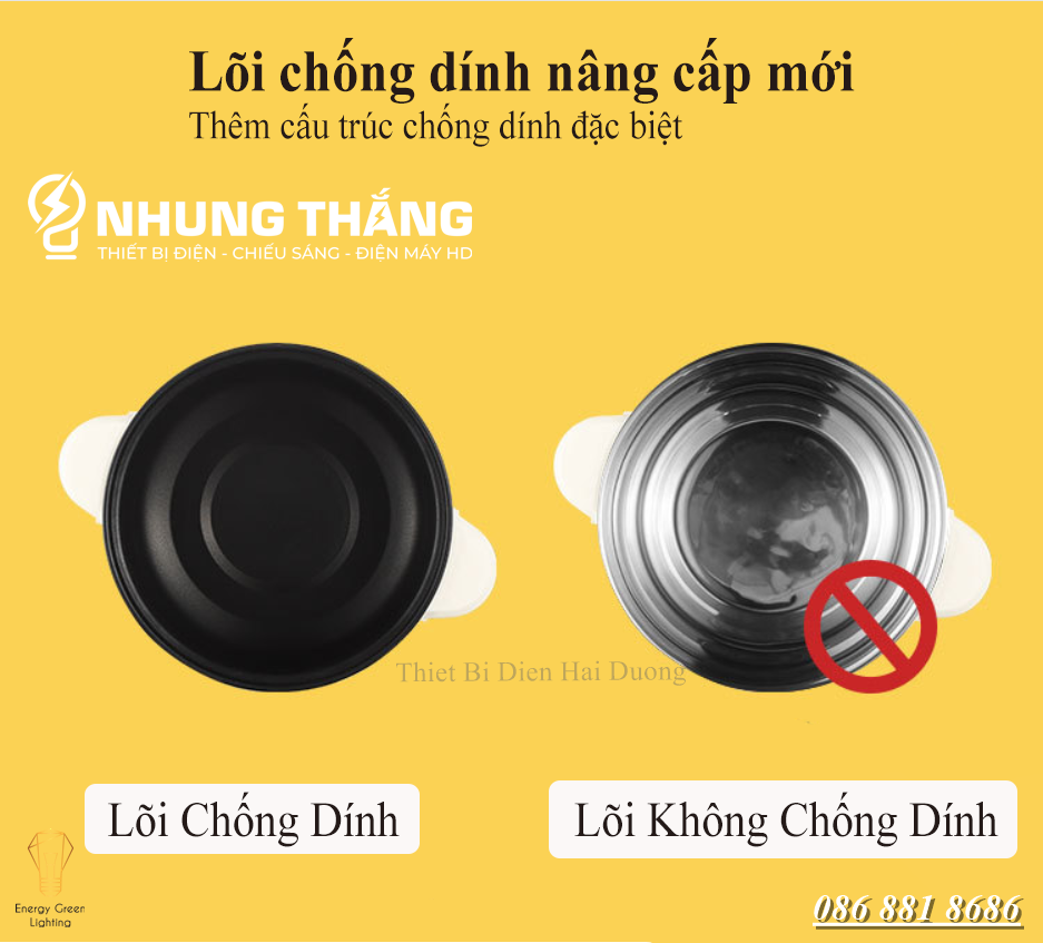 - Chất liệu chống dính cao cấp giúp bề mặt luôn sáng đẹp, chống bám cặn, dễ dàng vệ sinh.