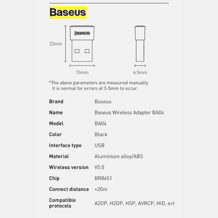 Baseus Mini USB Wireless Adapter Bluetooth Receiver BA04 cho máy tính / Laptop