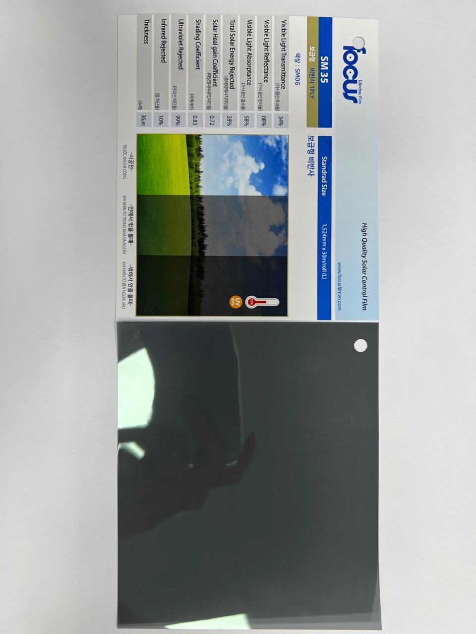 Chỉ số Film SM35 Độ xuyên sáng (VLT): 34%