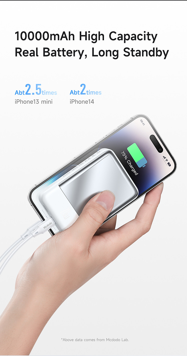 Chất lượng và độ tin cậy luôn được Mcdodo cam kết, đảm bảo an toàn cho thiết bị của bạn trong quá trình sạc năng lượng. Pin Dự Phòng Không Dây Mcdodo Ambilight Series 20W Magnetic Wireless Power Bank 10000mAh không chỉ là một nguồn năng lượng di động mà còn là một công cụ tiện lợi giúp bạn tối ưu hóa cuộc sống di động của mình. Đừng để thiếu pin làm gián đoạn cuộc sống của bạn - hãy tin tưởng vào sản phẩm này để giúp bạn luôn kết nối và sẵn sàng đối mặt với mọi thử thách.