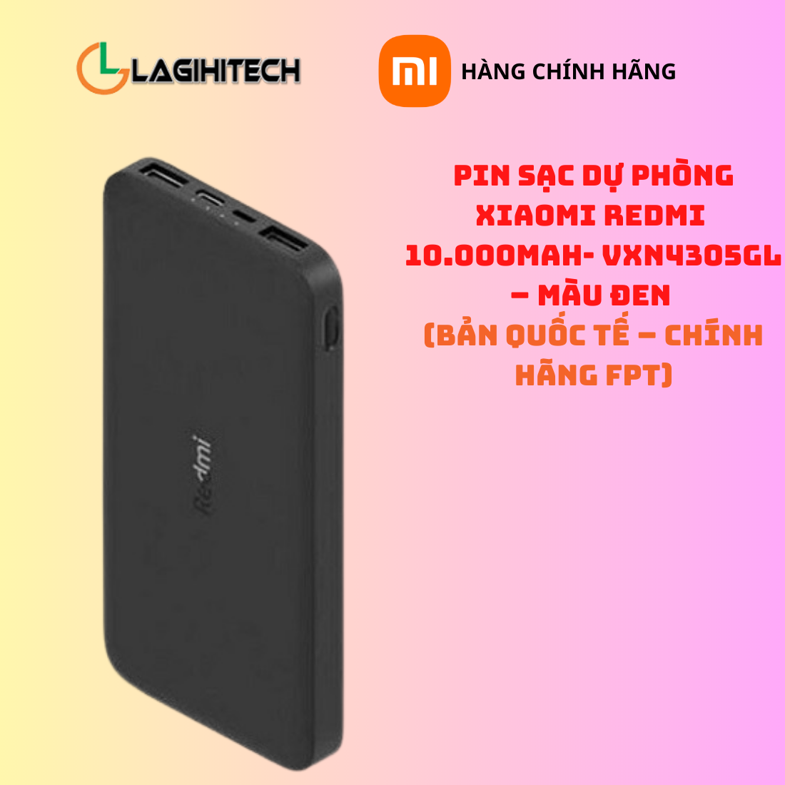 Pin Sạc Dự Phòng Xiaomi Redmi 10.000mAh VXN4305GL – Màu Đen