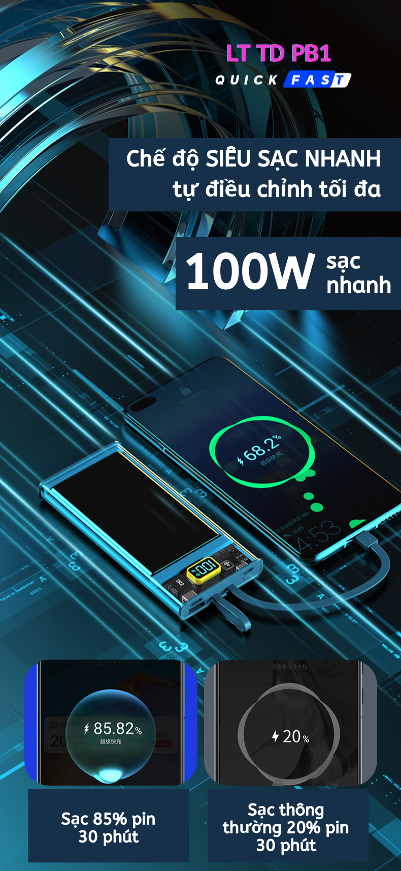 *Để sạc thiết bị khác với tốc độ siêu nhanh: vui lòng kết hợp CÁP SẠC NHANH và PIN SẠC DỰ PHÒNG, thiết bị cần sạc (điện thoại, máy tính bảng, vv) sẽ không sạc nhanh được nếu không có CÁP SẠC NHANH
