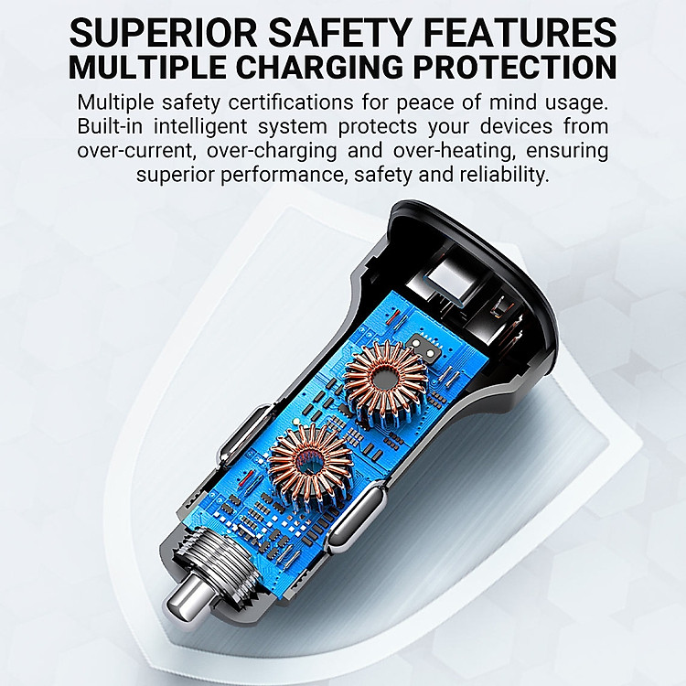 - Thiết kế Chip thông minh, có thể tự động nhận diện bất kì thiết bị nào cắm sạc và phân bổ công suất, dòng điện, điện áp cho nó