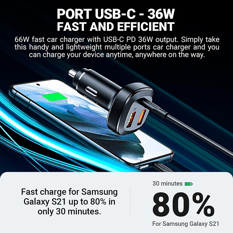 - Sạc nhanh cho Samsung S21 lên đến 80% chỉ trong 30 phút