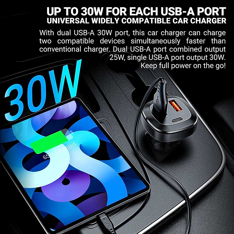 - Mỗi cổng USB-A có công suất 30W, khi dùng đồng thời 2 cổng USB-A thì có tổng công suất là 25W