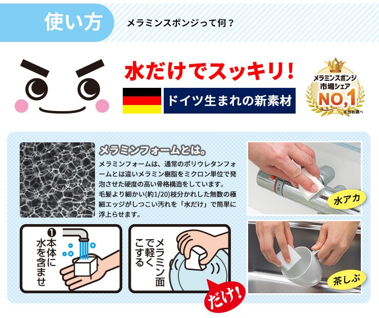 | Hướng dẫn sử dụng | Cắt nhỏ miếng mút melamine với kích thước phù hợp với từng mục đích sử dụngNhúng miếng mút melamine vào nước và bóp nhẹ cho đến khi không còn nước rồi sử dụng chà rửa, vệ sinhLau sạch lại vật dụng bằng khăn khô hoặc rửa lại bằng nướcKhông sử dụng cho những vật dụng có lớp phủ bên ngoài như lớp phủ flo, gương phủ lớp chống bóng mờ, sản phẩm có bề mặt nhám, đồ dùng bằng sơn mài, bằng gỗ hay các vật dụng có trang trí hoa văn tinh xảo…Đối với những vật dụng bị cặn bám lâu ngày khó chùi rửa, nên ngâm trong nước một khoảng thời gian nhất định rồi chà rửa bằng mút.Khi sử dụng xong giặt sạch, phơi khôVệ sinh sạch sẽ sẽ sau mỗi lần sử dụngSử dụng sản phẩm đúng cách |