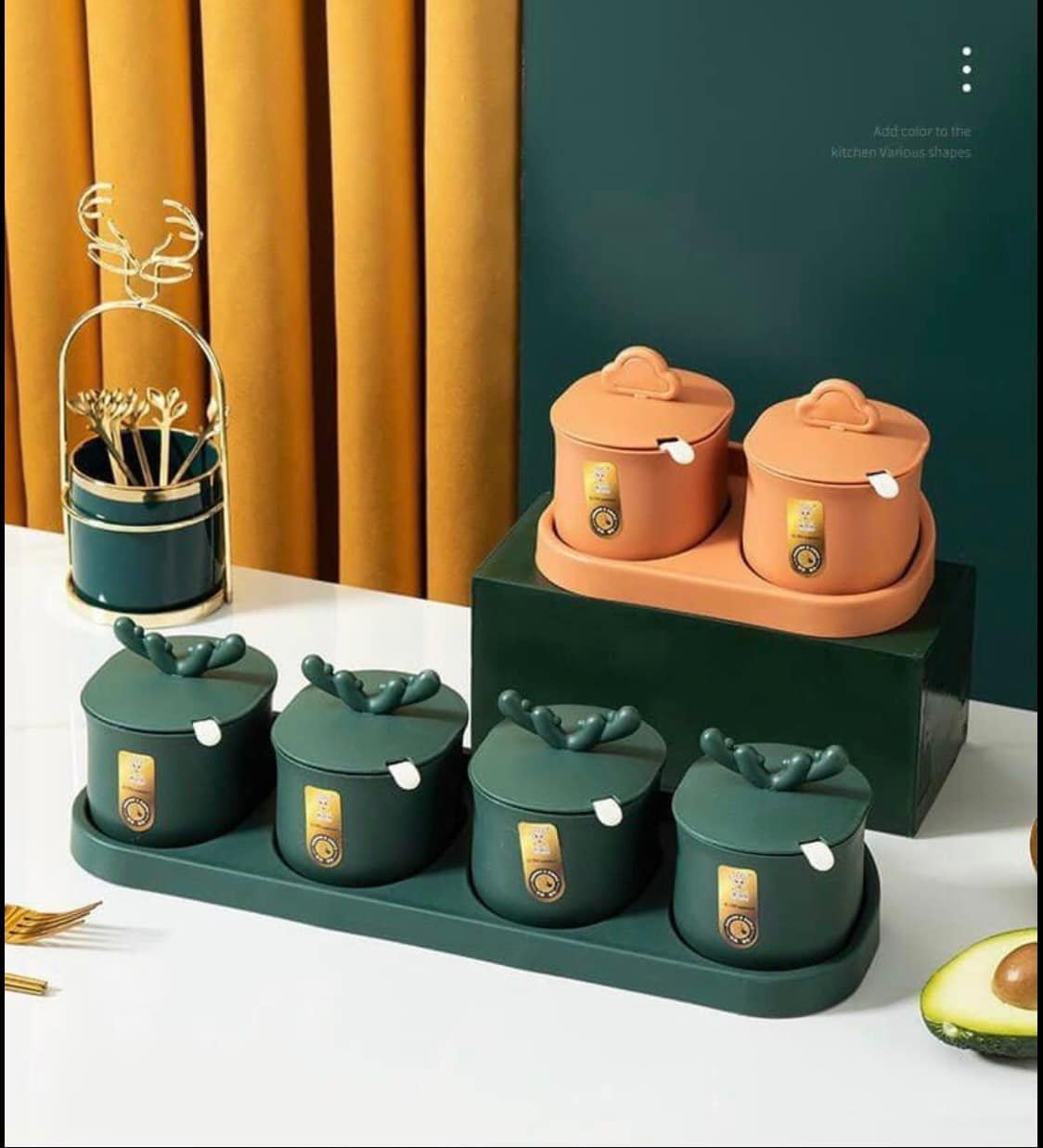 đựng gia vị , mỗi hũ đều có thìa , kèm 1 kệ cùng màu
