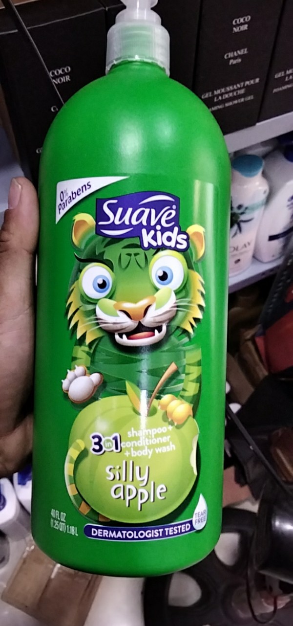– Suave Kids Shampoo + Conditioner + Body Wash với mùi hương tự nhiên và những hình ảnh vui nhộn bên ngoài làm bé thích thú hơn khi tắm. Sản phẩm được các bác sĩ tại Mỹ kiểm nghiệm là dịu nhẹ cho mắt, không cay mắt bé và dễ dàng rửa sạch khi Suave Kids lọt vào mắt bé.