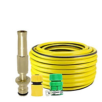 Bộ dây vòi xịt nước rửa xe, tưới cây . tăng áp 3 lần, loại 15m 206318 đầu đồng, đai, nối vàng