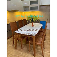 Bàn ăn thông minh kéo dài mặt đá nhập khẩu Tundo chân sắt sơn tĩnh điện kích thước 1m4 x 2m