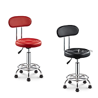 Ghế kỹ thuật viên có lưng tựa CB2256-2PS Ghế thao tác công nhân nhà máy nệm tròn bọc PVC chân ghế thép mạ chrome có bánh xe