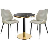 Bộ bàn ghế sảnh tiếp khách chân mạ màu vàng Bộ bàn tròn mặt đá 2 ghế có nệm hiện đại HCM SL BEACON-06EC / ECO 14A