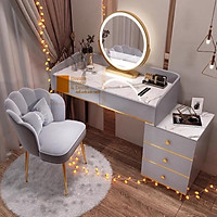Ghế trang điểm bọc vải nhung LARA 1B-F Ghế ngồi bàn trang điểm dành cho nữ vải nhung màu xanh hồng xám chân mạ màu vàng đồng tại HCM