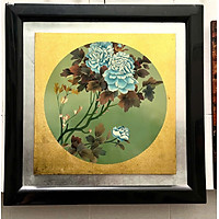 Tranh sơn mài hoa mẫu đơn cao cấp 80x80 cm có khung sơn mài đẹp