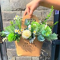 Giỏ hoa lụa, túi hoa lụa quà tặng hoa lụa - tăng thầy cô giáo 20/11 - Cây giả Decor trang trí nhà cửa