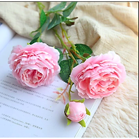 Giá sỉ-Hoa hồng mẫu đơn cao cấp loại 1-Hoa giả-Hoa lụa-Cành 3 bông 1 nụ size 65,5cm