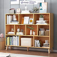 Tủ Kệ Sách Gỗ Đa Tầng 4 Chân Cao Cấp FIVO Mẫu FB60 Màu Gỗ, Nội Thất Lắp Ráp Đơn Giản, Nhiều Ngăn Rộng Rãi (Có Kèm Tấm Lưng)