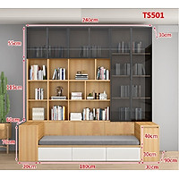 TỦ KỆ SÁCH CÁNH KÍNH KÈM GHẾ NGỒI TS501A - NỘI THẤT LẮP RÁP VIENDONGADV
