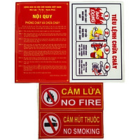 Bộ 4 bảng Chất liệu Mica gồm: Nội quy, Tiêu lệnh phòng cháy chữa cháy, Cấm lửa, Cấm thuốc