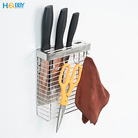 Kệ treo dao kéo Inox 304 có 4 móc treo dán tường Hobby home decor KDT