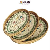 Khay Mây Khảm Trai Hình Bầu Dục Đựng Bánh Kẹo, Trái Cây, Khay Trang Trí Decor Nhà Cửa, Sản Phẩm Thủ Công Từ Mây Tự Nhiên