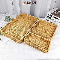 Khay Trang Trí Mây Tre Đan ANKAN – Rổ Vintage Handmade Đựng Trái Cây, Bánh Kẹo, Mỹ Phẩm, Trà Bánh