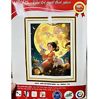 Tranh thêu kín cùng thỏ ngắm trăng vs8137, kích thước 40 x 50 cm