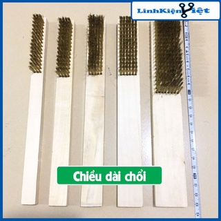 Bàn chải sắt mạ đồng 3, 4, 5, 6, 8 hàng cán gỗ kích thước 200mm chuyên đánh gỉ làm sạch bề mặt kim loại
