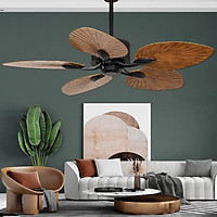 Quạt trần cánh gỗ đẹp 5 cánh trang trí phòng khách phòng ngủ phòng ăn Hàng nhập khẩu bảo hành 48 tháng