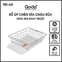 Rổ Inox 304 Úp Chén Dĩa Có Mâm Hứng Nước Loại Trượt Goda PT970