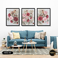 Bộ 3 tranh trang trí "Hoa hồng tươi thắm" | Tranh treo tường hoa lá W3408 Canvas