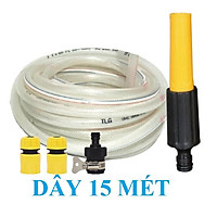 Bộ dây vòi xịt nước rửa xe, tưới cây . tăng áp 3 lần, loại 15m 206318 đầu đồng,đai,nối vàng+ tặng mở chai