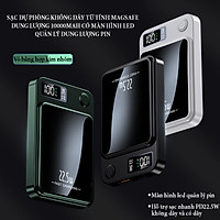 Sạc dự phòng không dây từ tính dung lượng 10000mAh màn hình led quản lý dung lượng pin, hỗ trợ sạc siêu nhanh 22.5W, vỏ hợp kim nhôm