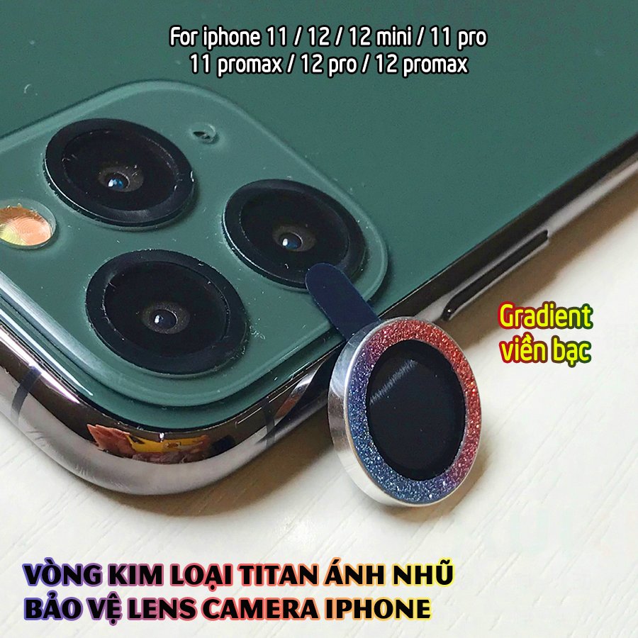 Vòng kim loại titan ánh nhũ bảo vệ lens camera cho dòng iphone 11 & iphone 12 - Gradient viền màu.