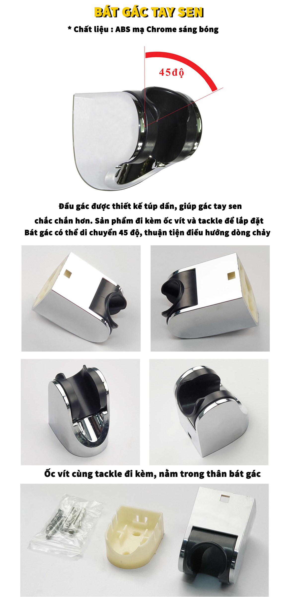 * Bộ sản phẩm bao gồm : 1x Tay sen, 1 x dây sen dài 150cm, 1x Bát gác gật gù, 1 x Phiếu bảo hành