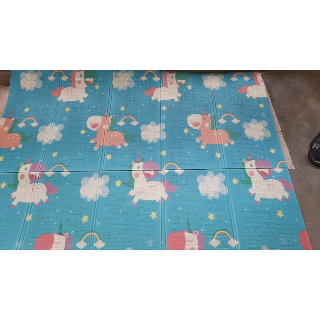 - Thảm in 2 mặt với họa tiết khác nhau nên bố mẹ có thể sử dụng cả 2 mặt tiện lợi. Công nghệ in cao cấp, bền màu, không chứa mực độc hại, nên an toàn cho bé khi tiếp xúc